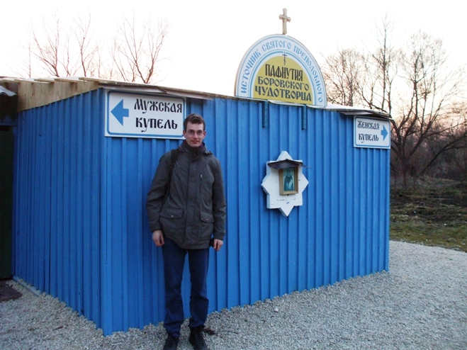 Und wieder musste ich früh aufstehen - schon um halb sechs. Um 6:27 Uhr ist der Zug gefahren - ich bin mit einem Mädchen aus dem ersten Kurs zusammen gefahren. An der Metrostation Zarizino hat Masha mich angesimst, dass sie mich noch kurz treffen wolle. Und nun wollte das Handy nicht so richtig funktionieren, so dass ich ihr erst kurz vor knapp antworten konnte. Ich konnte schnell durch die Eingangstüre schlüpfen von dem Haus, das Mädchen ist mir dann hinterhergelaufen, obwohl ich ihr gesagt hatte, dass sie weitergehen sollte. Das hat sie dann anschließend auch getan. Um zehn nach sieben war ich dann in der Taufkirche, wo Vater Nicolai, Vater Konstantin und Vater Alexeij die Göttliche Liturgie schon feierten. Es sang auch mein Chor, da ich aber nicht mit geübt hatte, habe ich erst gar nicht mitgesungen. Mir schien es, als hätten die anderen auch nicht geübt. Angeblich war eine Chorprobe am Mittwoch - da wusste ich aber überhaupt nichts von - wie auch? Anschließend haben wir kurz gefrühstückt - es gab für jeden in der Stalowaja eine Tasse Tee und einen Teller mit Kartoffelpüree und Fleischsstückchen. Zum Glück hatte ich morgens schon gefrühstückt. Dennoch habe ich mir für die Fahrt ins Kloster nach Optina Pustin noch zwei Äpfel und ein paar Kekse gekauft - man weiß ja nie. Gegen neun Uhr sind wir dann losgefahren - in einem in Deutschland ausrangierten Neoplan-Bus, dessen Zustand äußerlich noch ganz in Ordnung war. Auf den Reifen war auch noch genug Profil drauf, so dass ich mir keine Sorgen machen musste. Doch bei genauerem Hinsehen zeigte der Bus im Inneren doch so ein paar Macken: Die Stühle funktionierten nicht richtig und waren teilweise recht ausgeleiert - und die Abstände dazwischen für meine Größe viel zu gering. Ich bin froh, dass der Bus nicht den Zustand von einem anderen Bus russischer Bauart hatte, der in völliger Schräglage (bei gerader Straße) durch die Gegend kurvte und fast aussah, als würde er jeden Moment umkippen. Am Stadtrand von Kaluga haben wir eine kleine Pause gemacht und einen kleinen Lebensmittelladen belagert, geplündert und geräumt. Die Frau wird an dem Tag wohl einen guten Umsatz gehabt haben. Ich selbst habe mir ein kleines Eis gegönnt - für acht Rubel. Nach einer weiteren Fahrt - nun nicht mehr auf einer autobahnähnlichen Straße - kam wir in Optina Pustin an. Auf dem Weg dorthin habe ich mehrfach gedacht, dass mir gleich fürchterlich schlecht wird, weil die Sitzplätze im Bus recht hoch unter dem Fahrer lagen. Von außen sieht der Bus wie ein Doppeldecker aus. Die Straßen waren etwas schlechter und deshalb schaukelte es gewaltig. Dennoch - es war schön durch die kleinen Dörfer zu fahren und zu schauen. Und wie auch schon in Saratov an der Wolga wurden an jeder Ecke und Kante die Felder gebrannt. Am Nachmittag kamen wir an, haben unsere Zimmer bezogen - ich hatte eins mit Onkel Slawa, Andrej und einem Studenten aus dem vierten Kurs. Im Eingang vom Hotel fragte Vater Nicolai mich, ob ich auch baden gehen würde. Meine Antwort war "Ja - selbstverständlich, aber nur, wenn Sie auch gehen!" Seine Antwort: "Ich gehe!" Damit hatte ich nun nicht gerechnet und hatte gedacht, dass er wieder einen seiner Scherze macht. Anschließend stand ein kleiner Waldspaziergang an - also ein wenig ziellos im Wald herum streunern und sich unterhalten - hier konnte man genau sehen, wer nur selten nach außerhalb kommt von den Stadt-Moskauern: Sie benahmen sich im Wald ganz anders und es wurde beispielsweise das zuhauf fotografiert, was für mich im Wald normal ist: Bäume... Ich dagegen habe auf den Baumstämmen herumgeturnt. Um fünf Uhr sind wir ins Kloster spaziert - ebenfalls auf einem alten Weg quer durch den Wald - und sind dort in die Vetschernaja gegangen. Eine Besonderheit war, dass alle Priester dort zu zweit mit den Dreier-Leuchtern mit Kreuz zuerst den Altar, dann das Volk und dann die Ikonen der Kirche beweihräuchert haben. Das hat allerdings sehr lange gedauert, weil 24 Priester anwesend waren. Nach Vetschernaja sind wir dann zur Quelle gegangen, die in der Nähe vom Kloster liegt - etwa 500m entfernt. Dort waren schon die ersten im Quellwasser, das in ein Becken mit Überlauf lief und sich ein einer Holzhütte befand, wo man sich ausziehen konnte - natürlich aufgeteilt in Männlein und Weiblein. Als dann die erste Gruppe raus war, bin ich dort ebenfalls mit hineingegangen, habe ich mich ausgezogen, bin wie alle anderen nackt (ich habe den Anfang meiner Gruppe gemacht) ins Wasser gegangen, dreimal untergetaucht und dann wie eine Rakete aus dem eiskalten Wasser wieder herausgeschossen. Letztendlich war es sehr lustig und mir war anschließend kaum kalt. Der Tag ging in dem Hotel nach dem Abendessen recht lustig zu Ende: Gerade als wir den Osterkanon angefangen hatten zu beten, viel das Licht für etwa 10-15 Minuten aus, es wurde im Licht von Handys jedoch fleißig weiter gesungen und gebetet. Das passierte dann noch mehrere Male. Gegen halb zwölf habe ich mit Bett gelegen, konnte aber nicht sofort einschlafen, auch wenn ich sehr müde war: Einerseits war es sehr kalt im ganzen Haus und ich habe mich klein gemacht, um irgendwie warm zu bleiben und andererseits hatte einer meiner Bettnachbarn einen lauten Schlaf - er hat zeitweise wie ein Weltmeister geschnarcht.