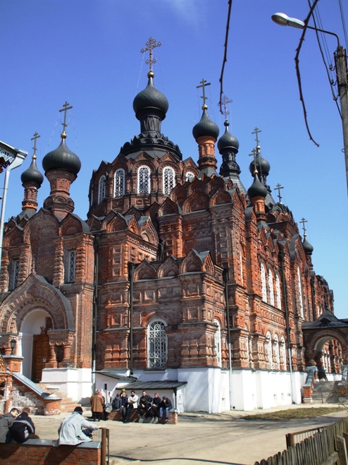 Nach kurzer Fahrt sind wir dann in Schamordino angekommen beim Kloster "Ikone der Gottesmutter von Kasan und Hl. Ambrosius". Wir hatten dort etwa eine halbe Stunde Zeit und konnten die große Backsteinkirche von Innen entdecken. Besonders interessant war die Ikonostase dort, da sie sehr interessante Darstellungen hatte: Zum einen war das Gewand des Engel Gabriel in einem sehr dunklen Rot gehalten und nicht wie üblich in Rosa und die Gottesgebärerin (bzw. Gottesmutter) Maria hatte ein sehr dunkel gemaltes Gewand, das eigentlich in blau und rot gehalten ist. Die Engel waren über den Diakontüren und auf den Diakontüren befand sich auf der rechten Seite der Hl. Stephanus und auf der linken Seite der Hl. Laurentius - die ersten Märtyrer. Auffällig war das Kirchengebäude selbst auch, weil aus rotem Backstein gebaut wurde. Kurz nach der Abfahrt vom Kloster haben wir an einem kleinen Lebensmittelladen angehalten und unsere Reiseleitung Sasha hat dort für jeden ein Eis gekauft. Ich glaube nicht, dass die jetzt noch viele Vorräte haben. Um etwa halb acht waren wir wieder in Moskau am Paveljetsker Bahnhof. Und dann gab es noch eine schöne Begebenheit: Vater Nicolai und ich hatten fast den gleichen Weg nach Hause und ich habe ihn extra vorgehen lassen, da das Versteckspiel weiter seinen Gang nehmen sollte: Ich wollte nach Masha gehen. Ich habe ihr vorher immer einige Nachrichten auf das Handy geschrieben, damit sie Bescheid wusste. Masha hat schon durch die Türe geschaut - auch als Vater Nicolai vorbeilief. Vorbeilief? Masha öffnete die Türe und wollte mir zuwinken, da sie mich in der Ferne schon kommen sah. Die Türe ging langsam immer weiter auf - sie wusste jedoch nicht, dass Vater Nicolai stehen geblieben war um jemanden zu verabschieden. Als sie die Türe langsam weiter öffnete, schaute er dann neugierig um die Ecke. Nun wusste er Bescheid - 1:0 für Vater Nicolai. Wir haben den ganzen Abend über diese Anekdote herzlich gelacht. Wir wissen nun nur nicht, wie er das aufgefasst hat, da er nicht gelächelt hat...