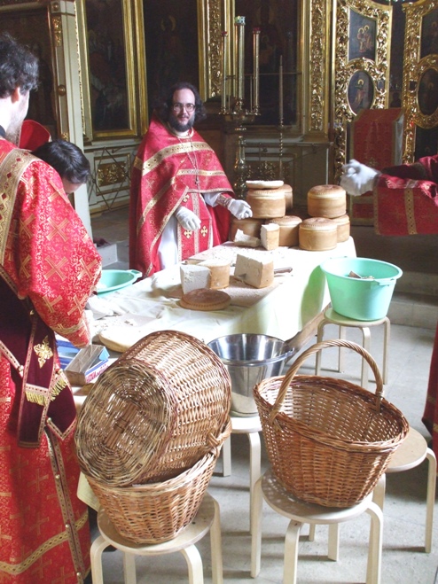 Segnung des Brotes mit dem Namen Arthos durch Vater Vladimir und Vater Michael.