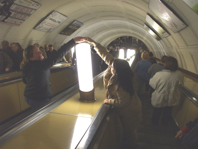 Auf dem Nachhauseweg habe ich auf der Rolltreppe von der Metro zum Kursker Bahnhof deutsche Stimmen gehört und die Frau hinter mir angesprochen. Sie kommt aus Oberammergau und ist gerade auf eine Schiffsreise von irgendwo nach St. Petersburg und machen gerade in Moskau Station, um die Stadt ein wenig zu erkunden - so auch einzelne Metro-Stationen. Viel Zeit zum Reden war nicht - sie war nur sehr erstaunt über die U-Bahn hier. Wir hatten uns schon verabschiedet, da bin ich noch einmal zurückgegangen und habe sie vor den Handtaschendieben in St. Petersburg gewarnt.