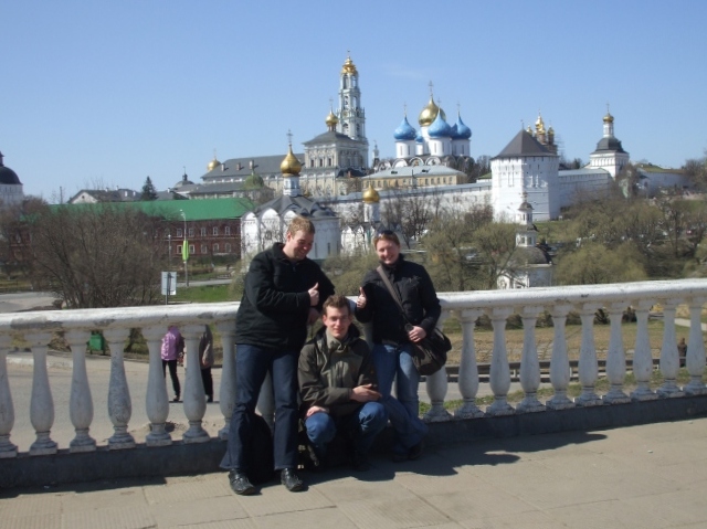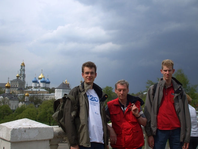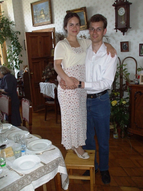 Nun am Ende dieses Kapitels will ich mir - wenn auch schon ein paar Wochen später - noch einen kleinen Rückblick erlauben. Dieser Monat war so ausgefüllt mit Ereignissen, dass ich sie kaum zusammenfassen kann: Er beginnt mit der Osterzeit und insbesondere der Hellen Woche, in der es wieder sehr schöne Liturgien gab und in jedem Fall angeführt wird von der Fröhlichkeit der Auferstehungsliturgie. Sie ist nach wie vor für mich eine ganz tolle Erinnerung und war tatsächlich der liturgische Höhepunkt, den ich bisher erleben durfte. Schon vor meinem Russlandaufenthalt habe ich mir ja vorgenommen, in jedem Fall zu diesem Fest in der Kirche zu sein. Dadurch, dass ich bei Mashas Eltern so oft zu Gast sein darf, war dies auch überhaupt kein Problem. Auch in der Osterzeit habe ich meine Beziehung zu Masha sehr vertieft und mit jedem Tag bin ich mit ihr glücklicher und in der Familie fühle ich mich mittlerweile sehr wohl und geborgen. Sie ist für mich wie meine eigene Familie geworden und ich bin sehr glücklich dort sein zu dürfen. Ich versuche jedoch auch immer, nicht nur dort zu sein, zumal ich doch eigentlich im Wohnheim zu Hause bin und dort auch Freunde habe, die ich nicht ganz vergessen will, da ich ihnen auch viel zu verdanken habe und gerne mit ihnen sprechen und zusammensitzen möchte. Ein weiteres kleines Ereignis war die Fahrt nach Optina Pustin, die auch sehr schön war. Hier hatte ich wieder einmal die Gelegenheit etwas Natur zu schnuppern und mich an der Natur zu erfreuen. Besonders in Erinnerung habe ich natürlich das Bad in der Heiligen Quelle und mit welchem Tempo ich da nach dreimaligem Eintauchen wieder herausgeschossen bin. Und ich bin davon nicht krank geworden. Die nächsten beiden wichtigen Ereignisse passen auch in die Osterzeit - die Zeit der Freude: Mein Besuch auch Deutschland. Ende April kamen einen Tag eher als ich dachte Mark und Nathalie, meine Kommilitonen aus Münster. Zusammen mit Masha hatten wir sehr viel Spaß und Freude und ich konnte ihnen viel von Moskau und der Umgebung zeigen. Zum Schluss musste ich Masha dennoch hin und wieder um Rat fragen, was man denn nun machen könnte. Wir sind mit einem derartigen Tempo durch die Stadt geflitzt, dass es nachher schwierig wurde noch Touristenattraktionen zu finden. Das wurde dann mit Museen gerettet. Zu meinem Geburtstag als Nathalie und Mark noch da waren, sind mein Vater und mein Bruder gekommen - leider ohne meine Mutter. Sie ist zwischenzeitlich krank geworden und das war für mich eine so große Enttäuschung, dass an meinem Geburtstag selbst ein paar Tränen geflossen sind. Wie gerne hätte ich sie doch hier gesehen und ihr Moskau und ein bisschen von der Umgebung gezeigt! Hatte ich doch noch am Vormittag meines Geburtstag so viel Hoffnung, sie zu sehen bis dann der die Freude zerstörende Anruf kam. Letztlich war es sicherlich gut so, wie es gekommen ist, zumal es in Moskau sehr schwer geworden wäre, einen Arzt zu finden, der helfen und mit dem wir die Sprachprobleme hätten überwinden können. Die Traurigkeit wurde aber sehr schnell überdeckt mit der großen Fröhlichkeit und Freude, die die beiden mitgebracht haben. Insbesondere Papa war einfach unheimlich frei und für jeden Unsinn zu haben, so dass wir sowohl in St. Petersburg als auch in Moskau eine sehr gute gemeinsame Zeit hatten, die ich so schnell nicht vergessen werde. Hier hat sich auch gezeigt, dass Masha gut in meine Familie passen könnte. Zumindest haben die drei sich mehr als gut miteinander verstanden und so haben wir gemeinsam viel herumgealbert. War die Besichtigungstour mit Nathalie und Mark schon schnell - nun hatte ich den Eindruck, dass wir noch schneller gewesen sind. Der Höhepunkt dieser Besuchstage war natürlich die Pomolvka - das Öffentlichmachen unserer Beziehung - wo mein Vater und mein Bruder mit dabei waren. Dafür war dieser Zeitpunkt ja extra gewählt und auch dieser Tag hat gezeigt, dass unsere beiden Familien gut zusammenpassen könnten. Hatte ich am Anfang des Tagebuches von der russischen Gastfreundschaft geschwärmt, so setzt sie sich jeden Tag in Mashas Familie fort - welch ein Segen!