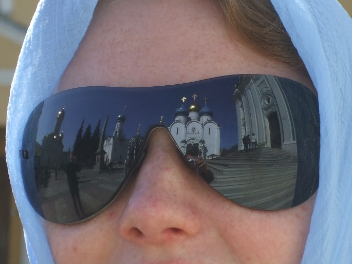 Der heutige Tag begann mit einem "heiligen" Frühstück: Es gab zunächst Heiliges Wasser und geweihtes Brot, letzteres haben wir von Vater Vladimir am Sonntag erhalten und Masha und ich haben es heute Morgen gemeinsam gegessen. Anschließend habe ich mich mit meinem Vater und meinem Bruder in der Metro-Station Textilschschiki getroffen und wir sind ins Wohnheim gefahren. So konnte ich beiden zeigen, wie ich hier in Russland wohne - auch wenn sich hier schon einiges verändert hat: Es stehen wesentlich weniger Bücher auf dem Schrank, ein großer Teil der Ikonen ist schon zu Hause - und dennoch gibt es genug, was wieder nach Hause muss. Anschließend sind wir in den Park Zarizino gefahren, wo wir uns die Parkanlagen angeschaut haben und ein wenig dort spazieren gegangen sind. Dort haben wir auch ein Eichhörnchen gesehen, was ganz zutraulich war, dann aber von einem Auto der Miliz geflüchtet ist. Nach dem Mittagessen haben wir uns mit Masha getroffen und sind gemeinsam nach Sergijew Possad ins Dreifaltigkeitskloster gefahren. In Sergijew Possad fing es leicht an zu regnen, so dass wir uns erst unterstellen mussten und derweil ein Eis gegessen haben. Als es wieder trocken war, sind wir zum Kloster gegangen und ich hatte eigentlich gedacht, dass wir noch auf dem Markt vor dem Kloster ein wenig schauen können, doch es waren kaum Händler da. Masha ist uns vorausgegangen und hat geschaut, wie viele Menschen vor den Gebeinen des Heiligen Sergej von Radonesch stehen und zu meiner und ihrer Überraschung fast keinen gefunden. So sind wir ihr gleich hinterher gegangen und auch ich habe die günstige Chance genutzt. Anschließend haben wir noch die obligatorischen Fotos gemacht und sind dann wegen eines starken Gewitterregens zuerst den Kloster-Honigkuchen essen gegangen und haben uns dabei eine Tasse Tee gegönnt. Als es wieder annähernd trocken war, sind wir durch die Kirchen getingelt, sofern sie geöffnet waren. In der Kirche im Zarenpalast hatten fing gerade die Vetschernaja an, so dass wir dort noch ein wenig zuhören konnten. Zum Schluss haben wir noch ein paar Kleinigkeiten in den Klosterläden gekauft und sind dann wieder heimgefahren - aber nicht, ohne vorher noch einmal Eis zu essen. Mittlerweile war es sehr abgekühlt - es waren jetzt sicherlich mit einem Mal 10°C weniger, so dass ich Masha meinen Pullover geliehen habe. Nach der Ankunft in Moskau sind wir Tscheburekij essen gegangen und sind dann reichlich zeitig heimgefahren, weil alle doch sehr müde waren. Den Abend habe ich genutzt, um ein wenig im Tagebuch zu schreiben und mich noch abzuduschen - was eine große Enttäuschung beinhaltete: Das Wasser war wieder nur kalt... Um halb zwölf habe ich dann den Weg ins Bett gefunden.