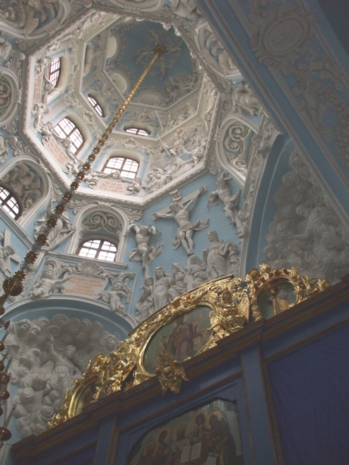 Um halb elf bin ich dann wieder aufgestanden, habe mich etwas frisch gemacht und bin dann mit Masha zur Prozession in die Dreifaltigkeitkirche gegangen um Fotos von der Prozession zu machen. Auch in hier sind wir in eine sehr feierliche Liturgie gekommen, in der sehr viele Eltern mit ihren Kindern waren. Die Prozession war auch wunderbar - an diesem Morgen wurden die Leute wieder mit reichlich viel Wasser gesegnet. Anschließend sind wir wieder zurück gegangen, haben angefangen die Rest des Abends zu essen und haben uns dann noch ein bisschen ausgeruht. Den Nachmittag habe ich mit Masha und ihrer Oma verbracht, um die Pizza für das Abendessen vorzubereiten. Zwischenzeitlich waren wir noch im Abendgottesdienst - wieder ein an Feierlichkeit kaum zu übertreffender Gottesdienst - und anschließend in der in Nähe liegenden Christus-Verklärungs-Kirche auf dem Holzglockenturm und haben dort geläutet. Es ist "normalen Menschen" nur in der Hellen Woche (die Woche des Lichts) möglich, in der orthodoxen Kirche zu läuten, was viele auch wahrnehmen.