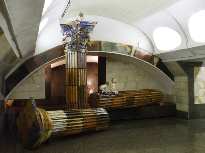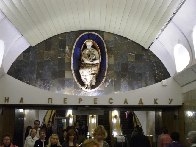 Wie üblich bin ich zu 12 Uhr mit der Elektritschka in die Stadt gefahren und habe im Kursker Bahnhof den renovierten Durchgang zur Metro ausprobiert, der seit meiner Ankunft geschlossen war. Er ist erstens viel schneller und zweitens komme ich auch bei Regenwetter trockenen Fußes zur Metrostation. Dazu kommt noch, dass ich wesentlich weniger Treppen steigen muss. Alles in allem eine schöne Sache. Zudem macht die renovierte Halle einen schönen Eindruck und zeigt ein bisschen, wie sie in den 50er Jahren ausgesehen haben könnte, als die Station eröffnet worden ist. Jetzt muss ich mich nur noch daran gewöhnen, dass ich an anderer Stelle in den Zug in der Station Pererwa einsteigen muss.