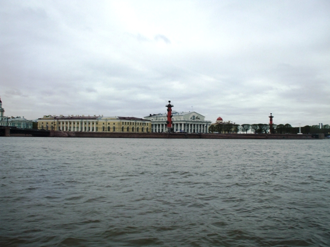 Schiffsfahrt auf der Njeva - hier sind die Rostral-Säulen zusehen.