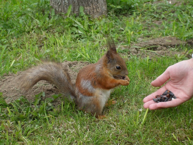 Der Flug von Matthias und Papa ging heute schon in alle Frühe - um 9:20 Uhr ist der Flieger einer russischen Airline abgehoben. So haben wir uns um halb acht mit Marcus getroffen, der die beiden dann zum Flughafen gebracht hat. Der Abschied dort war sehr kurz, weil wir einerseits noch Devisen getauscht haben und man andererseits dort nur 15 Minuten frei parken darf. So haben Masha und ich uns recht schnell wieder aus dem Staub gemacht, haben im Seminar gefrühstückt, unsere Sachen so weit wie möglich für die abendliche Abreise gepackt, sind eine Stunde in die Göttliche Liturgie gegangen und uns dann zum Baltischen Bahnhof aufgemacht. Dort angekommen hatten wir noch etwas mehr als eine halbe Stunde Zeit, um Tee zu trinken und sind dann um 12 Uhr mit der Elektritschka nach Petershof gefahren, wo wir uns die Parkanlagen anschauen wollten. Dort angekommen haben wir erst mit einem Linienbus eine Stadtrundfahrt gemacht und haben uns dann in den Park aufgemacht. Sehr bemerkenswert sind dort die ganzen Springbrunnen, die sich durch den ganzen sehr großen Park ziehen, der direkt an einer großen Bucht die zur Ostsee führt liegt. Dort sind wir bis zum Nachmittag spazieren gegangen, haben uns die Springbrunnen angesehen und jede Menge Eichhörnchen, Meisen, Tauben, Spatzen, Buchfinken und andere Vögel gefüttert, von denen die meisten handzahm waren. Mit den Eichhörnchen hatten wir unsere Probleme, sie schauten zwar immer, was wir in der Hand haben, wollten aber nichts davon haben. In einem Baum haben wir ein Eichhörnchen gesehen und dort saß versteckt ein Mann darunter. Wir sind dort auch hingegangen und wollten es füttern. Der Mann hat dann das Feld für uns geräumt und auch hier kam das Eichhörnchen nur zum Schnuppern. Und dann sahen wir unter dem Baum ein Portemonnaie dort liegen, dass dort höchstens einen Tag gelegen hat. Sämtliche Geldscheine wurde herausgenommen und nur ein paar Münzen und persönliche Andenken waren dort noch zu finden. Wir haben es an uns genommen und am Ausgang dem Wachmann gezeigt, der auch nicht viel ausrichten konnte, da keine Dokumente zu finden waren. Wir wollen versuchen, die Geldbörse irgendwie wieder zurückzusenden, wenn wir die Inhaberin ausfindig machen können. Den Namen und das Land wissen wir schon, mehr aber auch nicht. Nach dem Besuch im Park sind wir noch in die große Peter- und Paul-Kathedrale gegangen, die direkt dort in der Nähe ist und konnten dort sogar auf den großen Mittelturm gehen und von dort die Aussicht über den Ort und die Schlossanlagen genießen. Nachdem wir etwas in einem kleinen Lebensmittelladen gegessen haben, sind wir mit dem Bus zum Bahnhof gefahren und ich hatte dort gesehen, dass die Schranken vom Bahnübergang geschlossen waren. Kurz darauf kam auch schon die Elektritschka nach St. Petersburg, die wir dann in aller Eile mitbekommen haben. Im Bahnhof in St. Petersburg habe ich dann noch ein wenig fotografiert und wir sind dann ins Priesterseminar zurückgefahren, um unsere Sachen zu packen und zum Freund von Mashas Vater zu fahren. Dort gab es ein leckeres Abendessen und gegen 22 Uhr mussten wir schon wieder aufbrechen zum Bahnhof, da unser Nachtzug nach Moskau um 23:15 Uhr fuhr. Bei der Metrofahrt dorthin hatte ich ständig die Diebe im Kopf, die meinen Vater überfallen hatten und tatsächlich hatte ich den Eindruck, dass dort eine Horde dunkelhäutiger junger Männer herumlief. Übrigens: Es soll dort einmal einen Skandal gegeben haben. Eine Frau, die die Rolltreppe bewacht, hat eine solche Gruppe die Treppe herunterfahren gesehen und dann die Leute in der Metro-Station vor dieser Gruppe gewarnt. Der ganze Fall ist dann vor Gericht gegangen...