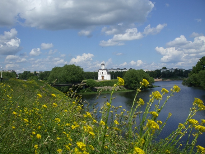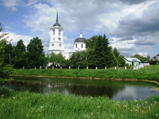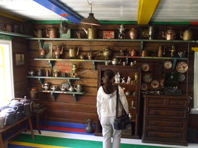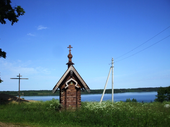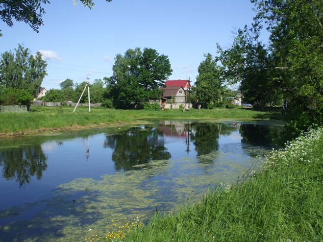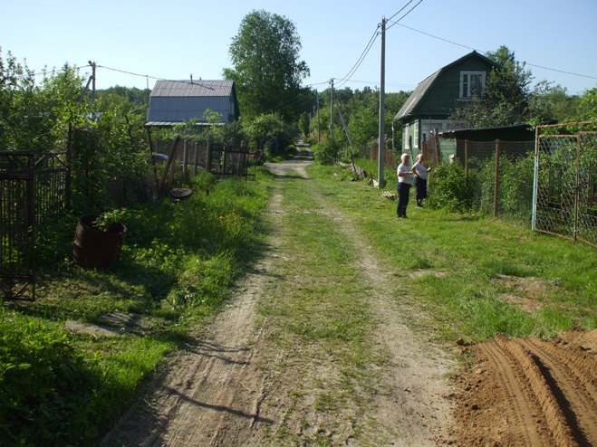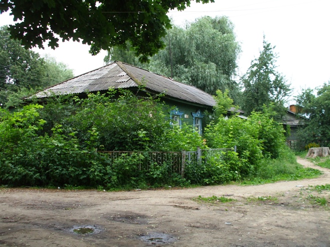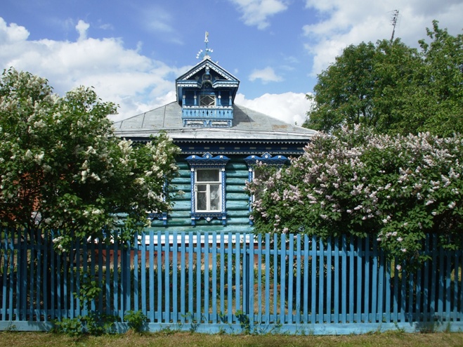 Nach dem Aufstehen um neun Uhr bin ich zunächst einkaufen gefahren und habe nebenbei noch ein paar Fotos gemacht. Nach meiner Rückkehr brauchte ich gar nicht lange warten, bis Masha aufgestanden ist. Wir haben draußen in der Sonne gefrühstückt, weil es im Haus und Schatten noch sehr kalt war. Nach dem Frühstück haben wir uns wieder in die Sonne gelegt und etwas gefaulenst. Zum Nachmittag hin, als immer mehr Regenwolken aufkamen und uns vor der Sonne schützten, sind wir mit den Fahrrädern ins Dorf Bunjakovo gefahren, um es uns kurz anzuschauen. Es ist ein schönes und altes Dorf, mit einer recht großen Kirche in der Mitte. Fasziniert haben mich dort vor allem die alten kleinen Holzhäuser mit ihren teils wunderschönen Fenstern. Es blühen viele Fliederbäume und Blumen auf den Wiesen und viele der Wege sind noch nicht befestigt. Mitten im Dorf und in der Nähe der Kirche gibt es einen kleinen Weiher und auch einen kleinen Lebensmittelladen. Und damit ist die ganze Romantik auch schon wieder vorbei, denn das Alkohol- und Spirituosenregal ist ist völlig dominierend in diesem Geschäft - wie in vielen. Als ich in diesen Laden gekommen bin, stand dort ein betrunkener älterer Mann mit einer schweren Axt in der rechten Hand und diskutierte mit der Verkäuferin. Letztlich hat sich dann herausgestellt, dass er der Wachmann des Ladens ist. Anschließend hat er unter Fluchen und Schimpfen seine Arbeiten dort verrichtet. Und so gibt es doch einige andere dunkle Gestalten im Dorf. Anschließend sind wir mit dem Fahrrad in das Nachbardorf Vsljotnaja gefahren um zu schauen, wann dort morgen die Panichida ist. Dort sind wir noch ein wenig herumgefahren und sind an einigen Geschäften vorbeigekommen - teilweise mit einem sehr gemischten Sortiment: Konnte man in einem Laden doch Elektrowaren und Blumen kaufen. Mit der Rückfahrt haben wir uns viel Zeit gelassen, wollten wir uns doch noch etwas ausruhen. So haben wir uns einen sonnigen Platz im hohen Gras ausgesucht, bis wieder eine große Regenwolke kam und es frisch wurde. Daraufhin sind wir heimgefahren und haben dann mit Mashas Eltern, die inzwischen und überraschend auch gekommen waren, etwas gegessen.