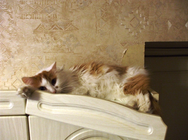 Was ich beinahe vergessen hätte: Die fünf Katzen haben zwei kleine Freunde bekommen. Beim Mittagessen klingelte es an der Türe, auf einmal war helle Aufregung im Haus und dann hatte Masha zwei kleine Katzen im Arm - etwa einen Monat alt, die fleißig am maunzen waren. Sie wurden von zwei Kindern vor der Wohnungstüre ausgesetzt. Mashas Mutter hat die Kinder noch im Flur gehört, konnte sie aber nicht mehr stellen. Ich habe Mashas Kater Pjitnisch die Aufgabe aufgetragen, Spielzeug für die Kleinen zu kaufen, doch er war zwar neugierig über den ganzen Tag hin, wollte aber nicht frühväterlichen Pflichten nachkommen.