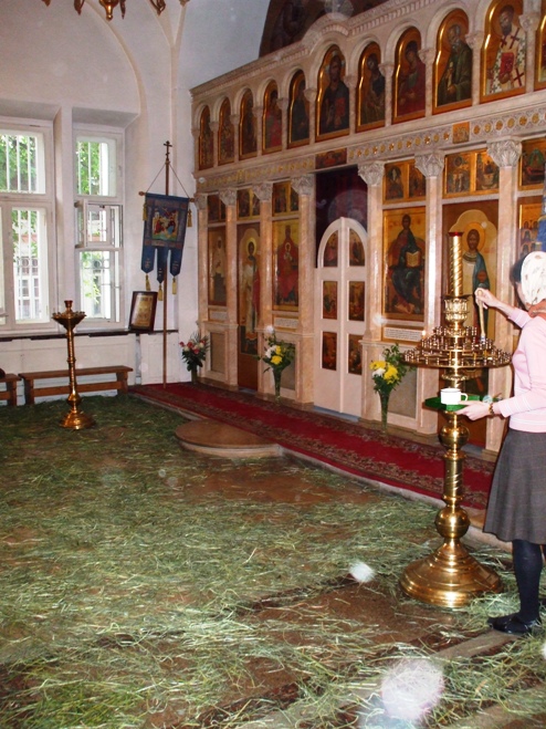 Eigentlich wollte ich mit Masha in den Abendgottesdienst gehen und wir sind dort um halb sieben auch angekommen. Allerdings war es dort so voll, dass ich nicht sehr lange geblieben bin. Dennoch: Die Priester haben die roten Gewänder gegen weiße getauscht und alle Zeichen der Osterzeit sind verschwunden. Die Oster-Ikone vor der Ikonostase, die "Leuchtwerbung" und auch die Kopftücher der Frauen waren jetzt alle in weiß gehalten (viele tragen in der Kirche die liturgischen Farben). Nach dem Ölkreuz habe ich erst eingekauft und bin dann ins Wohnheim gefahren, weil ich mich noch mit Vitali getroffen habe, der mir einerseits beim Übersetzen geholfen hat und ich beim Aussprechen deutscher Wörter. Gegen elf Uhr hatte ich dann noch Zeit, weiter an der Hausarbeit zu übersetzen und bin um etwa halb eins im Bett verschwunden...