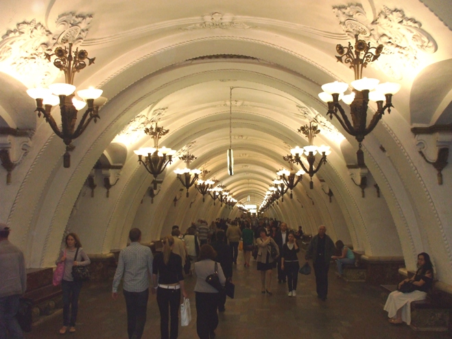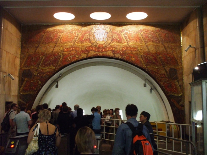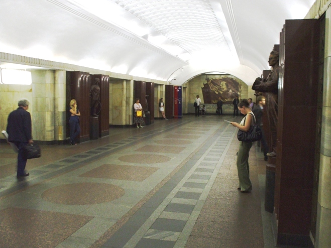 Eigentlich noch vor dem Aufstehen habe ich heute schon die erste Maschine Wäsche gewaschen, indem ich mich anschließend wieder für eine Stunde hingelegt habe. Zum Frühstück war sie dann fertig und ich konnte im Anschluss noch meine Socken dort hineinstopfen. Während diese zweite Ladung sauber wurde, habe ich die Sachen gepackt, die mein wohl letzter Besuch am Donnerstag mit nach Deutschland nehmen wird. Es sind nur noch ein paar Sommersachen, ein paar Bücher und etwas Kleinkram, den ich nicht so gerne hierlassen möchte. Dann habe ich die Kartons auf den Schränken durchforstet, das Verwertbare ebenfalls in die Taschen für nach Hause gestopft und die Kartons für den Müll vorbereitet. Ich will sie noch nicht wegpacken - mein weiß ja nie. Und so sieht es jetzt langsam aufgeräumt und nackt im Zimmer aus: Auf dem Ikonenregal steht nur noch die Taschenikone, auf dem Schrank nur noch zwei Kartons, die Elektrokamin ist dort drin verschwunden, die Schränke werden immer leerer und so nach und nach werde ich jetzt meine Klamotten nach Masha transportieren. Wir werden dann schauen, was wir damit anstellen. Eine Idee von mir ist, dass wir alles einlagern können, eine andere ist, es an einen DAAD-Studenten zu verkaufen, ich könnte es auch so versuchen zu verkaufen, es verschenken, usw. Gegen Mittag bin ich dann wieder in die Stadt gefahren, erst zu Masha und dann habe ich zuerst ein wenig Sightseeing gemacht: Gegen zwei Uhr bin ich zur Elochovskij-Kirche aufgebrochen. Es ist eine große und alte Kirche in der Nähe der Metro-Station Baumanskaja. Sie war während der Sowjetzeit die Hauptkirche der Russisch-orthodoxen Kirche, nach dem Bau der Christus-Erlöser-Kathedrale hat sich das geändert. Dennoch ist sie immer noch eine sehr prächtige Kirche mit einer schönen Ikonostase und viel Platz davor. Es standen noch die Weidenzweige an jeder Ecke und Kante und mit dem Sonnenschein, der durch die Fenster fiel, entstand dort eine feierlich Atmosphäre. Dort ist auch eine Reliquie des Hl. Apostels Andreas zu finden. Mit der Fahrt dorthin konnte ich gleich zwei Fliegen mit einer Klappe schlagen: Wollte ich doch auch einmal die Station Baumanskaja besuchen, man hatte mir mal gesagt, dass sie auch schön sein soll. Dem ist auch so - sie hat eine gewisse Ähnlichkeit mit der Station "Platz der Revolution", denn hier stehen auch einige Statuen herum. Sehr auffallend ist das feine Mosaik über der Rolltreppe in der Haupthalle. Auch diese Station ist mit feinstem Marmor ausgestattet. Anschließend war ich noch bei Sofrino einkaufen, dann in dem Geschäft unserer Universität und habe dann zu meiner Überraschung in dem "Kolonialwarenladen" (wenn man den mal so bezeichnen darf - zumindest gibt es dort jede Menge Sachen zu kaufen, die in einem normalen Laden in Moskau nicht zu finden sind und eigentlich nur aus anderen Ländern kommen - auch wenn in diesem Fall das Wort "Kolonial" etwas störend wirkt...) frisches Basilikum gefunden und zudem Peperoni - letzteres in leider nicht ausreichenden Mengen. Nun werde ich zu Koljas Geburtstag morgen wohl wieder meine Pizza "Orient" machen können. Kurz nachdem ich bei Masha zurück war, habe ich ihren Neffen und ihren Bruder in Deutsch unterrichtet und bin dabei etwas strenger als sonst vorgegangen und so hat es heute sehr gut geklappt. Gegen 20 Uhr habe ich mich schon wieder auf den Heimweg gemacht, weil ich noch zu einer kleinen Diplomparty im Wohnheim wollte - Oleg, Dima und Evgenij haben ihr Diplom bestanden.
