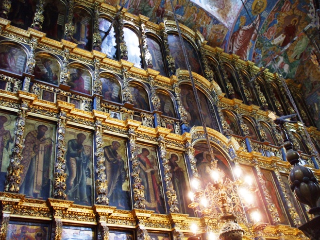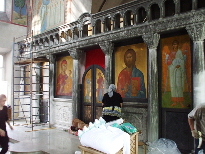 Die Haupt-Ikonostase - einige Stellen sind schon geputzt.