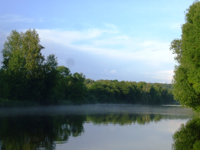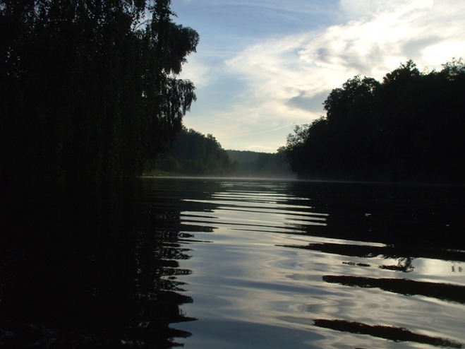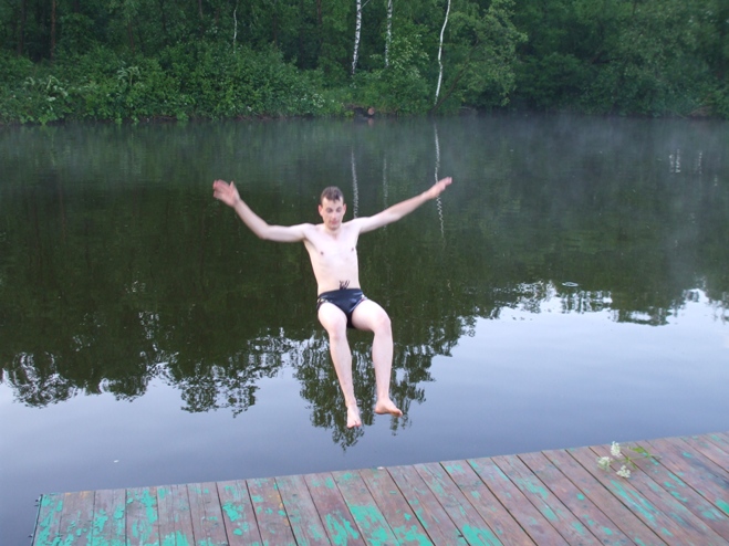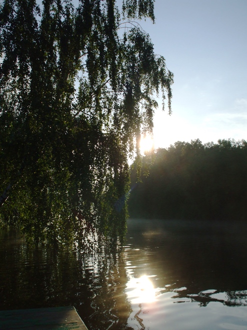 Direkt nach dem "Kirchegang" bin ich mit Masha und Tanja nach Voskreßensk gefahren, um dort mit Mashas Schwester Lisa und ihrem Mann Schaschlik zu essen. Die Hinfahrt war geprägt durch ein schweres Gewitter, durch das wir gefahren sind - waren es in Moskau an der U-Bahnstation noch über dreißig Grad, so war es nach dem Gewitter, viel Sturm und einer Menge Regen vielleicht sogar zehn Grad kälter - aber noch warm genug, um im nahegelegenen Fluss baden zu gehen. Und dort herrschte dann eine besonders schöne Atmosphäre, weil das Wasser noch schön warm war und über dem Fluss Neben aufstieg. Zudem schien die Abendsonne. Ich wäre am Liebsten gar nicht mehr aus dem Wasser hinausgegangen - auch nicht wegen der Grillsachen. Letztendlich musste ich dann aber doch raus aus dem Wasser.