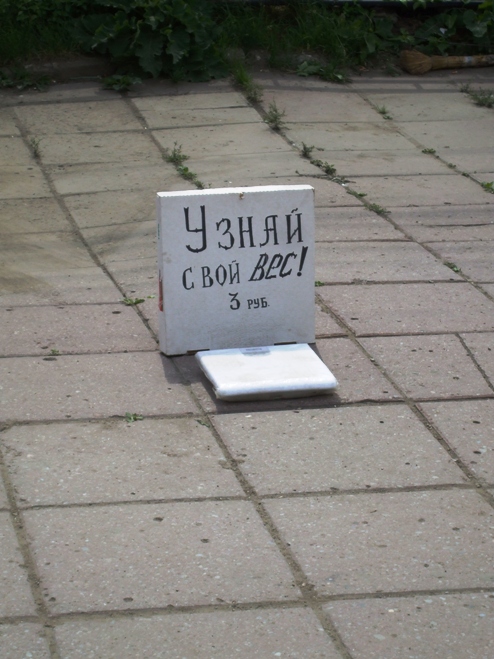 Auf dem Markt: "Wissen Sie Ihr Gewicht! 3 Rubel!"