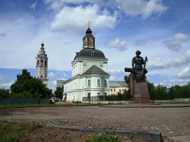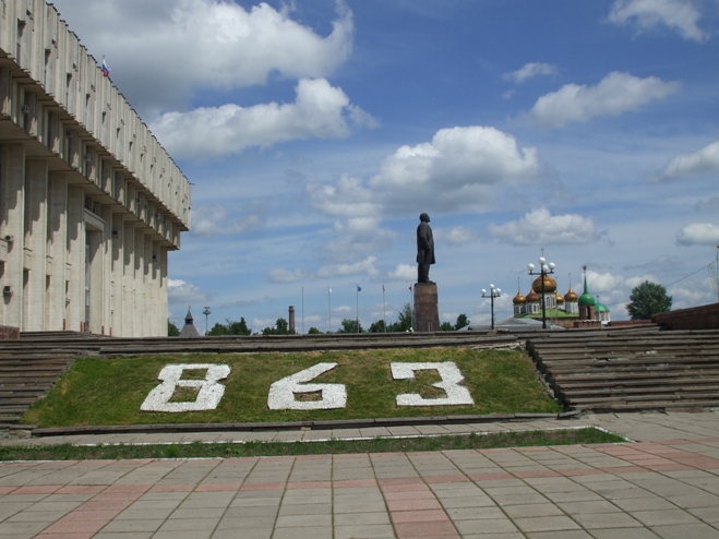 Hier ist Geschichte: Zuerst das Alter der Stadt, hinten der Kreml aus der Zarenzeit mit seiner Kirche und das Lenin-Denkmal auf dem Lenin-`Platz mit dem Haus der Stadtverwaltung.