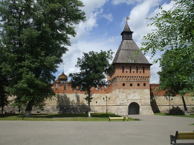 Da ich recht früh ins Bett gekommen bin konnte ich auch recht früh aufstehen - ohne noch liegen bleiben zu wollen. Nach einem schnellen Frühstück und dem notwendigsten Zurechtmachen habe ich Tanja aus dem Bett geholt, damit sie die Türe wieder abschließen kann. Durch den Wald und herrliche Morgenluft bin ich in der aufgehenden Sonne um halb sechs zum Bahnhof marschiert, wo ich mir ein Ticket nach Michnevo kaufen wollte. Die Frau hat mich aber wohl falsch verstanden und hat mir eine Fahrkarte nach Nishnije Kotlij gegeben - für 21 Rubel. Da hat sich dann während der gesamten Zugfahrt auch überhaupt keiner beschwert - es kam keiner. In Michnevo wollte ich mir dann eine Karte nach Tula kaufen. Die Frau am Schalter sagte mir, dass das nicht möglich sei und nach einigem hin- und her meinte sie, dass sie mir überhaupt keine Fahrkarte für die Strecke Michnevo-Stolbovaja verkaufen könne. Im Zug würde jemand kommen. So habe ich dann den Bahnsteig gesucht, vorher noch ein paar Diesellokomotiven fotografiert und habe ihn dann auch schnell gefunden. Nach ein paar Minuten kam die Elektritschka und stand dann dort erst einmal eine Zeit. Im Zug war so gut wie nichts los - die meiste Zeit habe ich alleine im Waggon gesessen. Die Strecke wird nur von zwei Zugpaaren am Tag bedient und dient dazu, dass die Leute aus den angrenzenden Dörfern in die Stadt und abends wieder zurück gefahren werden. Dementsprechend kärglich ist dort auch die Ausstattung an den Haltestellen: Sie sind eigentlich nur dadurch erkennbar, dass ein paar große Betonplatten an die Bahngleise gelegt wurden, eine weiße Linie gezogen wurde und ein Schild dort steht. Die Stationen tragen dann zumeinst keine Ortsnamen, sondern die Kilometerbezeichnung. Nach etwas mehr als einer Stunde Fahrt und 38km Strecke kam dann der Bahnhof Stolbovaja. Der Zug nach Tula hätte schon längst weg sein müssen, weil unsere Elektritschka zu spät dran war - der Zug nach Tula glücklicherweise aber auch. So war dann gewiss, dass ich zuerst nach Tula und dann nach Serpuchov fahren würde und so etwa drei Stunden eingespart habe. Die Fahrt nach Tula verlief ebenfalls interessant: Hatte ich im Zug nach Stolbovaja schon keine Fahrkarte kaufen können, kam jetzt erst nach etwa 80km, also zwei Stunden ein Schaffner. Ich sagte ihm, dass ich ein Ticket kaufen müsse und sagte ihm, dass ich von Michnevo komme. Er wusste gar nicht wo das ist und nachdem ich ihm erklärt hatte, dass ich in Stolbovaja eingestiegen bin, wollte er von mir 96 Rubel haben. Daraufhin habe ich ihm meinen Studentenausweis unter die Nase gehalten und dann lehnte er nur noch ab und verschwand. So habe ich bis nach Tula nur 21 Rubel bezahlt. Dort bin ich nach 4,5 Stunden Fahrt angekommen und habe erst ein paar Fotos von den wirklich laut lärmenden Dieselloks gemacht und habe mich dann auf den Weg in die Stadt gemacht. Eigentlich wollte ich zuerst den Kreml sehen, den habe ich aber nicht sofort gefunden und habe mir daher erst ein paar andere Kirchen angeschaut und den Blick von einer Brücke über den Fluss genossen. Die Stadt ist schon sehr alt - sie wurde 1146 erstmalig genannt und ist damit etwa gleich alt wie Moskau. Mir ist aufgefallen, dass die Stadt sehr gemischt ist - einerseits gibt es viele alte Häuser aus Holz und Stein und natürlich den Kreml, aber auch viele der Chruschtschovkas - 5-geschossige Wohnhäuser, die der damalige Präsident der UDSSR Nikita Chruschtschow errichten ließ um die Wohnungsnot zu mildern. Daneben finden sich in der ganzen Stadt verteilt überall irgendwelche Fabriken, die inmitten der Stadt zu finden sind. Und dann finden sich hier und da noch Kirchen, die noch nicht alle ihrer eigentlichen Bestimmung zugeführt worden sind, sondern eine andere Verwendung finden. Am deutlichsten wird das auf dem Lenin-Platz: Der große sowjetische Platz mit der Lenin-Statue, einem großen Gebäude, dann ist der Kreml sichtbar mit einer Kirche, gegenüber von dem großen Gebäude befinden sich zwei weitere Kirchen und ganz in der Nähe alte Stein- und Holzhäuser. Dreht man sich einmal um 180°, dann sieht man moderne Häuser und Geschäfte - dort macht alles einen amerikanischen Eindruck. Und mir ist aufgefallen, dass es in Tula keine wirklichen Hochhäuser gibt - zumindest in der Innenstadt. Tula ist natürlich auch bekannt für eine Art Lebkuchen, von dem ich mir etwas mitgenommen habe und auch für Mashas Familie. Als ich auf der Straße etwas kaufen wollte, hat mir jemand in die Seitentasche vom Rucksack gegriffen, aber nichts herausgenommen - dort lagen so oder so nur Zahnbürste, Deo, Kerzen und ein paar andere unwichtige Kleinigkeiten. Und ganz zuletzt ist mir noch aufgefallen, dass die Menschen in Tula sehr freundlich und zuvorkommend sind.