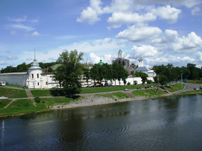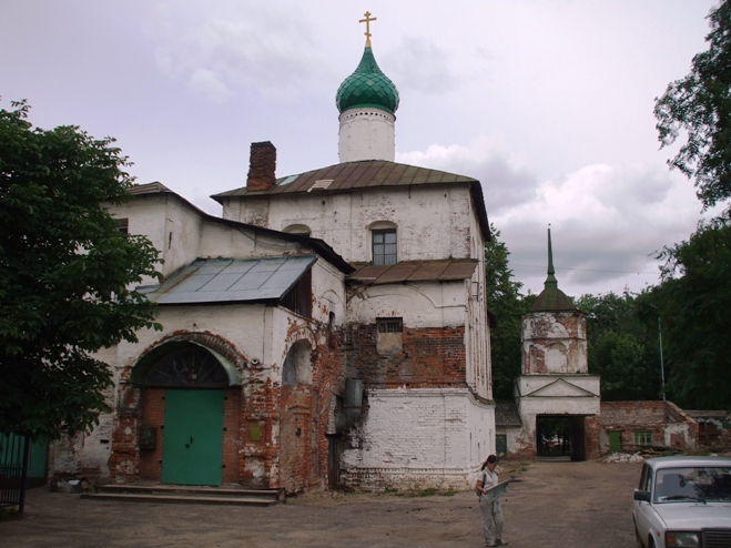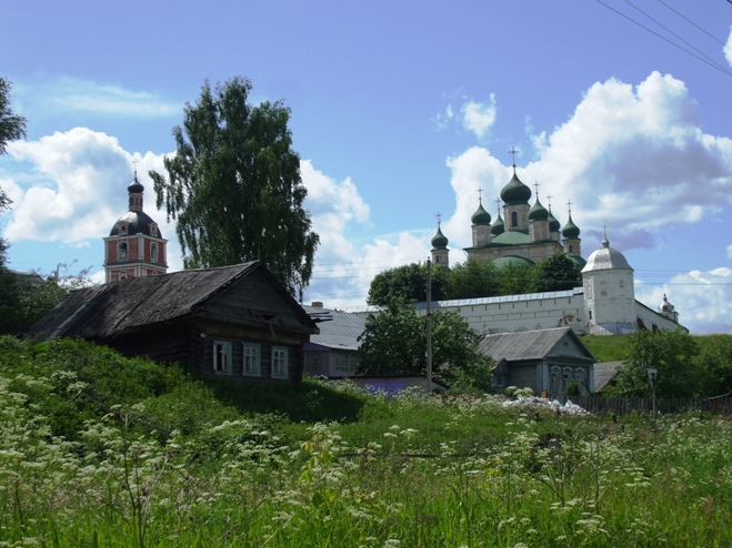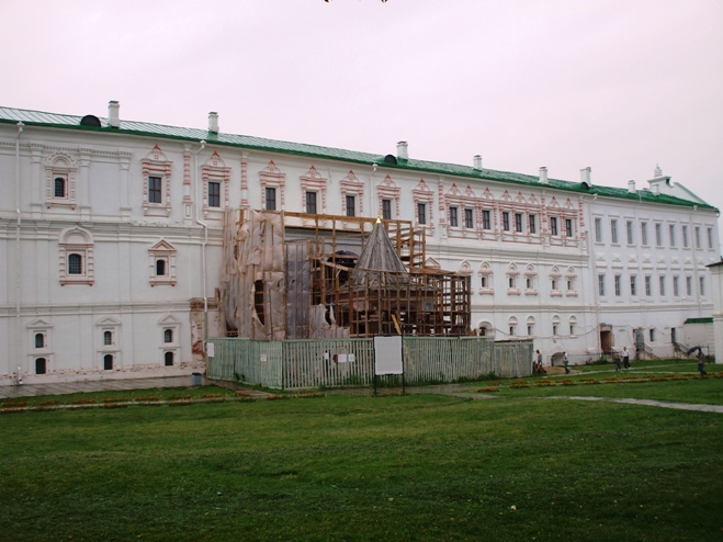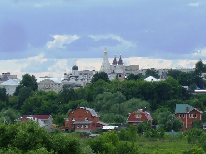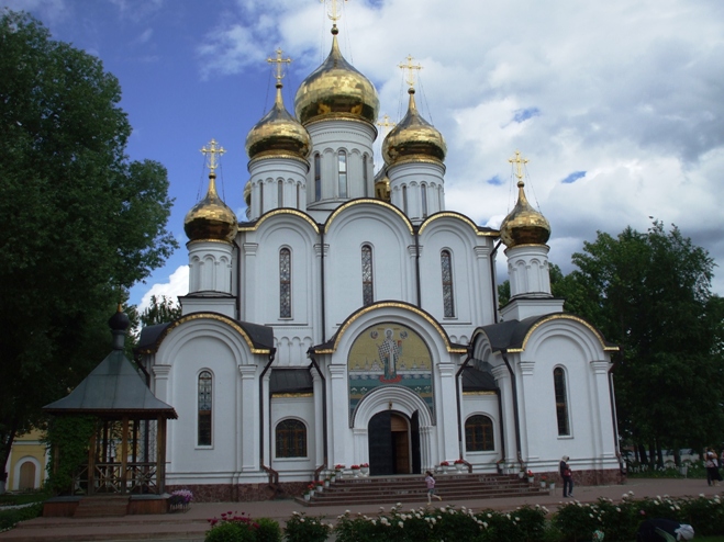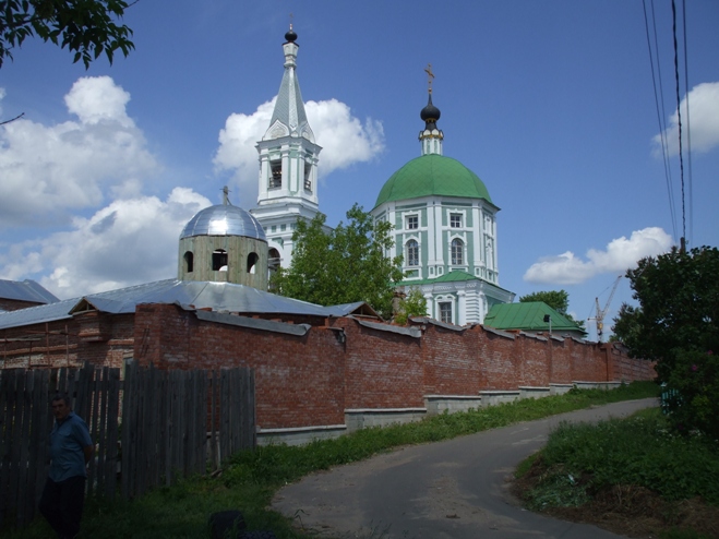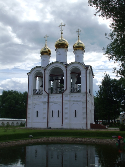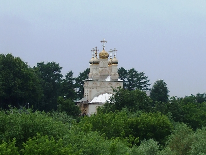 Nach dem dreistündigen Aufenthalt ging es dann nach einer zweistündigen Fahrt zurück in Richtung Moskau. Auf dem Weg dorthin findet sich eine Stadt mit Namen Serpuchov, der ich noch einen kleinen Besuch abgestattet habe. Dort gibt es zwei Klöster. Zuerst bin ich mit dem Marschroute-Taxi ins Frauenkloster gefahren. Die Fahrt dorthin war in einem alten sowjetischen Bus und gleich zu Anfang hatte ich das Gefühl, als würde ich in einem Boot sitzen. Der Motor nagelte und jaulte und nur langsam setzte sich der Bus in Bewegung. Der Fahrer musste Schwerarbeit leisten, da der Bus noch kein Servolenkung hatte und dann klapperte und schaukelte es auch schon los. Im Bus kam dann die Kassiererin - so wie ich es auch aus Irkutsk noch gut in Erinnerung habe. Das Frauenkloster habe ich als nix Besonderes empfunden - auch die Bäckerei nicht so richtig. Vielleicht lag es daran, dass ich schon zu müde war und nicht mehr die richtige Lust hatte. Auf dem Rückweg hat mir dann eine Frau gezeigt und gesagt, wie ich zum Männerkloster kommen kann - ebenfalls mit Marschroute-Taxi und Bus. Das Kloster hat mir schon viel besser gefallen. Es liegt auf einem Hügel am Fluss Nara und von dort lässt sich ein großer Teil der Stadt toll überblicken. Unten rauscht der Fluss und auf der Hügelkette erstreckt sich die Altstadt von Serpuchov. Die Stadt muss einmal viele Kirchen gehabt haben, da überall Türme zu finden sind. Einige Kirche sind aber noch nicht zurückgegeben worden. Das Männerkloster liegt auch sehr schön - in der Nähe gibt es viele kleine alte Häuschen und es entsteht so ein bisschen der Eindruck, als wäre man im alten Russland unterwegs. Doch auch diese Romantik wird wieder völlig gestört durch die Männer, die vor der Kirche betteln und das Geld dann gleich im nahegelegenen Kiosk in Alkohol umwandeln. Einer lag unterm Baum und schlief seinen Rausch aus. Mit dem Bus bin ich dann wieder zurück zum Bahnhof gefahren und habe ein wenig eingekauft, unter anderen ein wenig Kwass, den ich mir in eine Flasche habe füllen lassen. Der Mann fragte sogleich, wo ich denn herkommen würde und wir haben uns kurz miteinander bekannt gemacht. Dann ging auch schon der Zug nach Moskau. Mittlerweile war es durch einige Wolken am Himmel so kühl geworden, dass ich sogar meine Jacke anziehen musste. Um halb neun war ich dann bei Masha zu Hause, wir haben noch ein wenig die nächsten Tage verplant, etwas gegessen und dann bin ich ins Wohnheim gefahren. Nach einem kurzen Telefonat mit meinen Eltern habe ich noch einen kurzen Blick in meine Post geworfen und musste dann noch zur Administratorin gehen. Sie wollte fragen, wie regelmäßig ich noch im Wohnheim schlafen würde. Daraufhin habe ich mich gleich für die nächsten Tage abgemeldet, da ich viel mit Masha unterwegs sein werde. Auch wenn ich noch so müde war habe ich den Weg ins Bett erst um etwa halb eins gefunden...