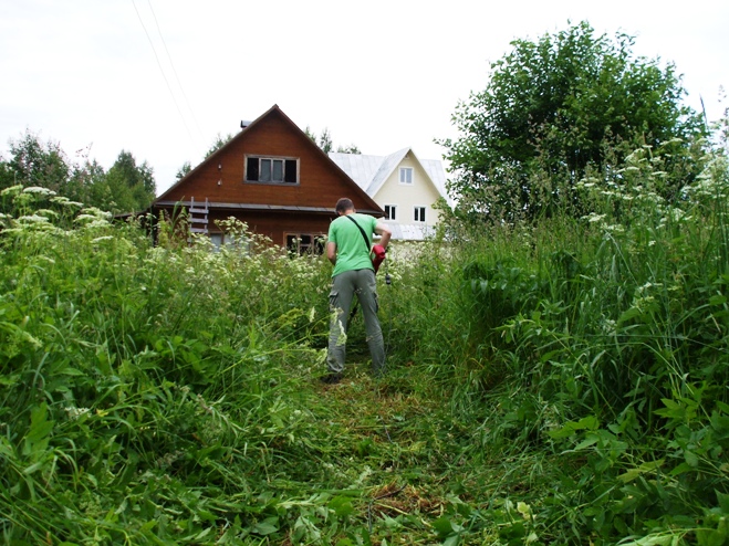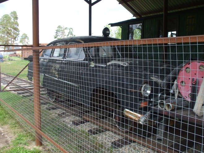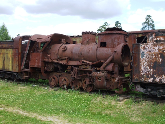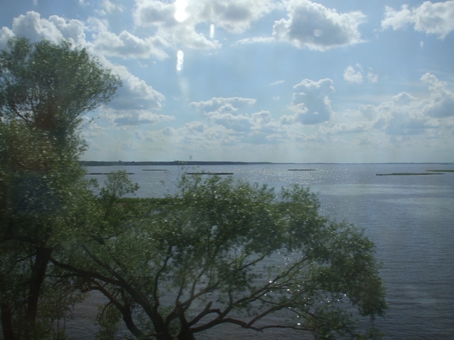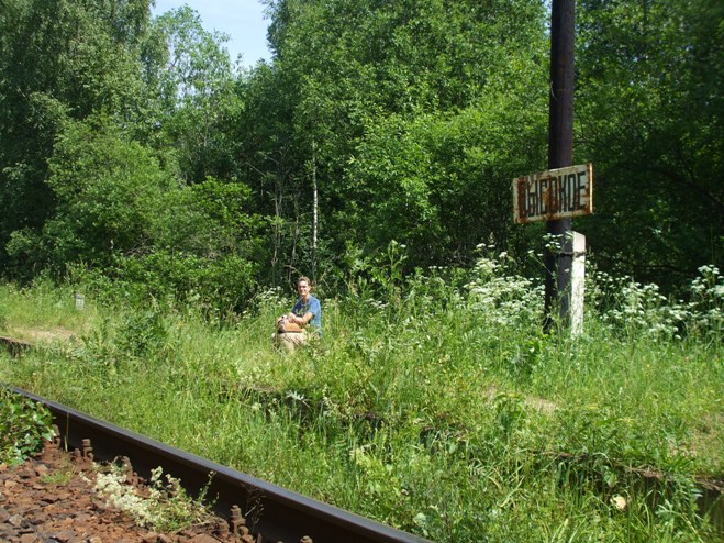 Nach dem Aufstehen haben wir die restlichen Sachen gepackt und haben uns mit zwei schweren Rucksäcken zum Savjolovsker Bahnhof aufgemacht und sind dann ins Dorf gefahren. Bis Savjolovo war es eine gewöhnliche Elektritschka und dann ging es mit einer Kukuschka weiter. Das ist ein kleiner Zug, der auf einer Art Nebenbahn verkehrt. In diesem Fall ist es eine sechsachsige Diesellok mit zwei Waggons dahinter, die alle Sitzplätze haben. Nachdem wir die Tickets für den Zug gekauft haben, haben wir uns in den Zug gesetzt und nach etwa zwanzig Minuten Wartezeit ging es dann im gemütlichen Blumenpflücktempo los. In Kaljasin gab es einen längeren Zwischenstopp und dann ging es noch langsamer weiter. In Vyßokoje zeigte sich mir dann eine Station, die kaum als solche zu erkennen ist. Dort steht im hohen Gras eine verwitterte Sitzbank, ein altes, verrostetes Schild zeigt den Bahnhofsnamen und ein paar Meter weiter steht noch ein altes Bahnhofsgebäude, das kaum zu sehen ist. Einen Bahnsteig gibt es nicht, einen Fahrplan auch nicht und Wege sind auch kaum zu erkennen. Nach etwa 40 Minuten Fußweg auf einer Sandpiste sind wir dann im Dorf angekommen. Es liegt direkt an der Wolga und besteht aus ein paar Holzhäusern. Nachdem wir die Gartenpforte geöffnet haben, begrüßte uns ein Grasfrosch, der aufgeregt vor dem Eingang hüpfte und versuchte, die Treppe zu erklimmen. Das ist ihm leider nicht gelungen. Nachdem wir die Rucksäcke soweit ausgepackt haben, sind wir erst in der Wolga baden gegangen. Der Strand ist keine zwei Minuten vom Haus entfernt und um schneller ins tiefere Wasser zu kommen, gibt es dort einen recht langen Steg. Das Wasser war noch recht frisch, so dass wir nicht lange im Fluss waren. An uns zog ein großes Passagierschiff vorbei, die dort wohl recht oft fahren. Nach dem Bad haben wir eine Kleinigkeit gegessen und vorher hatten die Handwerke die Pumpe im Brunnen repariert. Während dem Essen lief das Wasser in den Boiler und dann ging die Katastrophe los. Als genug Wasser im Kessel hat Masha die Druckpumpe eingeschaltet und prompt sind in der Küche zwei Anschlüsse gebrochen, so dass das Wasser nur so aus dem Fußboden sprudelte. Ich habe ein Loch notdürftig flicken können und auf das andere habe ich fest meinen Daumen draufgehalten - so lange, bis das gesamte Wasser - etwa 500 l - zurück in den Brunnen geflossen war bzw. durch die Dusche, Toilette und alle anderen funktionierenden Anschlüsse ins Abwasser. Das hat etwa 20-30 Minuten gedauert. Mit einer Hand habe ich versucht, die Überschwemmung mit einem Lappen zu mildern und mit der anderen Hand das Rohr zugehalten. Den Lappen haben ich immer über einem Kochtopf ausgewrungen, der in der Nähe stand. Als Masha ihn ausleeren wollte, mussten wir feststellen, dass da auch noch ein Loch drin war. Nach der Behebung der Überschwemmungskatastrophe habe ich im Garten etwas Gras gemäht - den Weg zum Brunnen, zur Toilette und zum anderen Haus freigemacht. Nach dem Abendessen haben wir uns noch den Sonnenuntergang an der Wolga angeschaut, der einfach nur herrlich war, wären die ganzen Mücken nicht gewesen. Einige waren sogar so hungrig, dass sie dem russischen Mückenspray widerstanden haben.