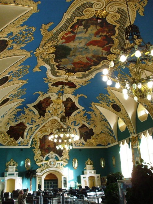 Nach einem schnellen Mittagessen bin ich dann mit Katja und Masha Tscheburejkij essen gefahren - das sind recht fettige Teigtaschen mit einer Käse- oder Hackfleischfüllung. Die sind zugegebenermaßen sehr lecker und besonders in einem kleinen Café in der Nähe der Haltestelle Kitai-Gorod, denn dort werden sie frisch zubereitet. Ganz in der Nähe befindet sich auch eine Griechisch-orthodoxe Kirche, die anscheinend dem Patriarchat von Antiochien untersteht - so wurde es mir zumindest erzählt. Die Kirche hat einen sehr interessanten Seitenaltar, denn die Zarentüren befinden sich nicht mittig von den Diakontüren, sondern diese beiden Türen sind an der linken Seite zu finden wegen der niedrigen Decke.