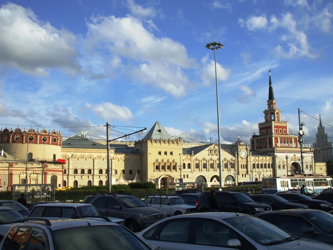 Und so war es dann auch: Nach dem Frühstück, bei dem mir Mashas Kater das Stück Wurst förmlich vom Brot geklaut hat, bin ich zum Bahnhof gegangen und habe einen sehr freundlichen und sehr interessanten Gast empfangen. Zunächst haben wir die Sachen bei Masha untergestellt und haben dann um kurz vor acht schon mit der Besichtigungstour angefangen, die zuerst problematisch war. Angefangen haben wir mit der Metro-Station "Platz der Revolution" und wollten dann auf den Roten Platz, der aber mal wieder gesperrt war. So sind wir drumzugelaufen und bei der Basiliuskathedrale angekommen. Eine interessante Frage dort war, ob die Turmspitzen irgendetwas mit dem Orient zu tun haben, da sie eine turbanähnliche Form haben. Danach sind wir erst auf die Brücke gegangen, von der man den Kreml und den Roten Platz aus gut sehen kann und von dort zur Christus-Erlöser-Kathedrale, die auch noch geschlossen war. So ging es mit der U-Bahn wieder in die Nähe des Roten Platzes, wo wir uns dann auf den Punkt Null gestellt haben. Wir haben uns kurz die Wache am Gedenkfeuer angeschaut und sind dann bei Mc Donalds frühstücken gegangen. Anschließend ging es mit der Metro noch einmal zur Christus-Erlöser-Kathedrale, in die ich selbst nicht hereinkam, da ich Shorts an hatte. Mein Gast war aber sehr überrascht und überwältigt von der Kirche. Anschließend sind wir zu dem Aussichtspunkt auf den Spatzenbergen gefahren, von wo wir Moskau noch einmal schön beobachten konnten - bei schönstem Wetter. Dort gab es auch Ski-Springer auf den Sprungschanzen - ein völlig ungewöhnliches Bild, dass bei hochsommerlichen Temperaturen ein paar Jungs den Berg hinabsausen, springen, mit einem "Klatsch" auf dem Plastikrasen aufkommen, die Sandpiste zum Bremsen benutzen und dann in ihren Anzügen schwitzend wieder nach oben laufen - die Skier auf dem Rücken. Fast abgeschlossen haben wir die Besichtigungstour mit den wichtigsten Metro-Stationen der Ringlinie. Wir waren noch kurz in der Universität essen und ich habe ihm dort das Wichtigste gezeigt - auch die Dreifaltigkeitskirche mit ihren Fresken, die Studenten unserer Universität dort angebracht haben. Und zu 14 Uhr habe ich ihn wieder zum Bahnhof gebracht - mit etwa 7kg Gepäck, dass er zu mir nach Hause schicken will. Damit habe ich nur noch sehr wenig hier in Moskau und vielleicht bekomme ich sogar die Ikone kostenlos mit. Anschließend habe ich mich bei Mashas Eltern noch ein wenig behilflich gemacht beim Katzen einpacken und das Auto beladen. Die Katzen in ihren Boxen waren fürchterlich am Miauen und offenbar gar nicht von ihrer Transportbox begeistert. Ich selbst konnte nicht mit zur Datscha fahren, da im Auto kein Platz mehr war und so habe ich auf Masha gewartet und wir sind dann gegen 19 Uhr mit dem Zug dorthin gefahren. Obwohl es gewittert hatte, war es immer noch drückend warm draußen und der Fahrtwind war eine echte Erleichterung. An der Station wurden wir mit dem Auto abgeholt und als wir ankamen, waren die vier Katzen gerade mit der Geländeerkundigung beschäftigt. Sie schnüffelten an jeder Ecke und durchquerten hochinteressiert das Grundstück. Und eigentlich alle fühlten sich gestört, wenn man sie streicheln wollte.