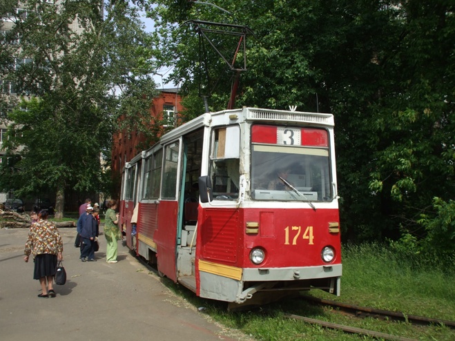 Nun sind wir leider schon wieder auf der Rückfahrt aus dem Dorf in die große Stadt Moskau und sehr bald schon wird es mit der erholsamen Ruhe zu Ende sein. Am Himmel ziehen schon die ersten dunklen Wolken auf und der Wetterbericht aus Moskau scheint zu stimmen. Den Tag haben wir noch einmal in Ruhe genossen und erst einmal ausgeschlafen. Gegen zehn Uhr bin ich dann aus dem Bett gestiegen und habe das Tagebuch vom gestrigen Tag geschrieben. Die Sonne schien und es schien ein ebenso schöner Tag zu werden. Nach dem Frühstück habe ich noch etwas an meinem Railsim-Programm herumgearbeitet und kurz darauf kam auch Masha. Zwischendurch habe ich noch die beiden kleinen Holzkirchen des Dorfs fotografiert, die schon fast majestätisch über der Wolga thronen. Wir haben die Zeit bis zur Abfahrt des Zuges damit verbracht, in der Sonne zu liegen, das Haus aufzuräumen, etwas zu essen und wir waren noch zwei Mal in der Wolga baden. Das erste Mal war es recht kalt, weil just in dem Moment die Sonne nicht schien. Kurz vor dem Abmarsch aus dem Dorf zur Bahnstation war das Wasser dann schön warm. Bei einer Bekannten von Masha haben wir die restlichen Lebensmittel abgegeben und sind dann zur bereits beschriebenen Haltestelle gegangen. Dieses Mal kam der Zug und es war ein recht Interessanter: Die Diesellokomotive hatte fünf Waggons am Haken - ein paar davon waren Schlafwagen. Allerdings war der Zug fast 20 Minuten zu spät. In Kaljasin gab es dann eine interessante betriebliche Situation, die ich mir erst gar nicht erklären konnte. Es kam ein zweiter Zug mit drei Waggons in den Bahnhof aus der Gegenrichtung gefahren. Die Lokomotiven vom Gegenzug wurde abgekuppelt und an das Ende unseres Zuges gesetzt, hat drei Waggons abgenommen und an das Ende bzw. Anfang ihres Zuges gesetzt. Dann kuppelte sie wieder ab und fuhr recht dicht auf unseren Zug auf. Wir fuhren los und sie langsam hinterher, bis sie dann im Weichenvorfeld des Bahnhofs stehen geblieben ist. Des Rätsels Lösung ist: Der Zug aus Savjolovo fährt weiter nach Sonkovo und muss so oder so in Kaljasin Kopf machen, das heißt einmal um den Zug drumzu, um dann in entgegen gesetzter Richtung weiterfahren zu können. Dabei hat sie drei Waggons von unserem aus Uglitsch kommenden Zug mitgenommen. Die letzten drei Waggons waren also nichts anderes als Kurswagen. Interessant ist die Strecke von Savjolovo so oder so: Hier verkehrt außer Dienstags und Donnerstags ein Zugpaar nach Uglitsch und zusätzlich Montags, Mittwochs und Freitags ein Nachtzugpaar von bzw. nach Moskau. So hat diese Waldbahn, die Kukuschka (Kuckkuck) genannt wird, tatsächlich noch Fernverkehr zu bieten. Der Einstieg an den Bahnstationen gestaltet sich jedoch recht schwierig: Nicht immer hält der Zug direkt am Bahnsteig und so ist die erste Stufe dann sehr hoch. Masha hatte mit dem Rucksack leichte Probleme dort hinaufzuklettern, zumal auch noch der Griff fehlte. Beim Ausstieg habe ich einer alten Dame geholfen, die mir zuerst ihre Handwägelchen gegeben hat und anschließend die Hand. Sie war sehr dankbar, dass ich ihr die Hilfe angeboten habe. Die Situation für alte Leute und solchen mit Gehproblemen ist in Moskau und besonders in ganz Russland völlig katastrophal. Es gibt mittlerweile zwar Niederflurbusse, aber selbst der Weg für einen Rollstuhlfahrer dorthin wäre nicht zu bewältigen: Es gibt kaum abgesenkte Bürgersteige auf den Straßen, die Einstiege in Busse, Bahnen, Straßenbahnen usw. sind einfach sehr steil und viel zu hoch. Und auch die Metro ist kaum zu erreichen. Einige Stationen sind mit Rolltreppen erreichbar, aber irgendwo versperren normale Treppen dann Rollstuhlfahrern wieder den Weg oder machen alten Menschen den Weg schwer. Beim Kursker Bahnhof gibt es zwar eine Rampe in den "Keller", wo es dann sogar vereinzelt Aufzüge gibt zu den Bahnsteigen, aber um die Rampe vor dem Bahnhof zu erreichen, muss eine hohe Bürgersteigkante erklommen werden. Und auch ein Ticket könnte der Rollstuhlfahrer nicht ohne Hilfe kaufen, da die Schalter zu hoch sind. Dazu kommt, dass wenn er in der Elektritschka sitzt, an längst nicht jeder Station aussteigen kann, da sie kein gleiches Niveau haben oder wiederum an Treppen von den Bahnsteigen scheitern. An für sich werden Behinderte in Russlands Gesellschaft und Leben völlig ausgeklammert und ausgeschlossen - als würden sie nicht existieren. Dementsprechend sieht man auch kaum Behinderte auf den Straßen und Plätzen, wohl aber alte Personen, die sich mit all ihrer verbleibenden Kraft die Treppen heraufquälen. Ich habe zwar schon von Behinderteneinrichtungen gehört, aber nur im äußerst schlechten Sinne, wo diese Menschen mehr oder weniger eingesperrt sind und vor sich hinvegetieren. Als ich diesen Text geschrieben habe, hat Masha von Häusern erzählt, die behindertengerecht gebaut worden seien, aber auch sie sind kaum von Nutzen, wenn die Gesamtsituation mehr als mangelhaft ist.