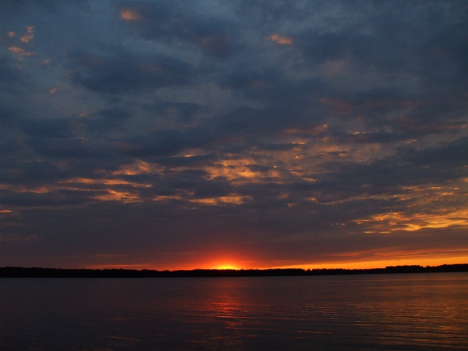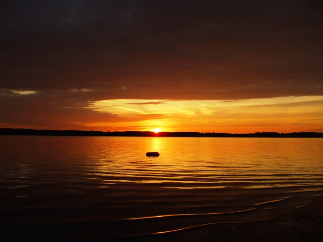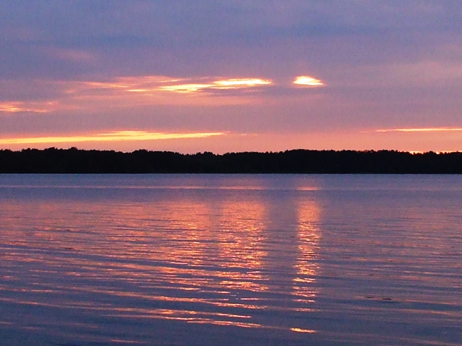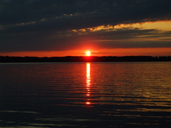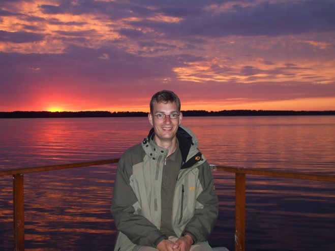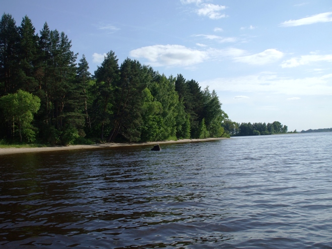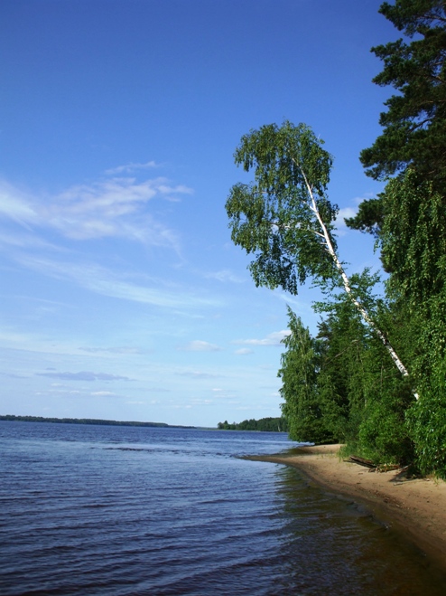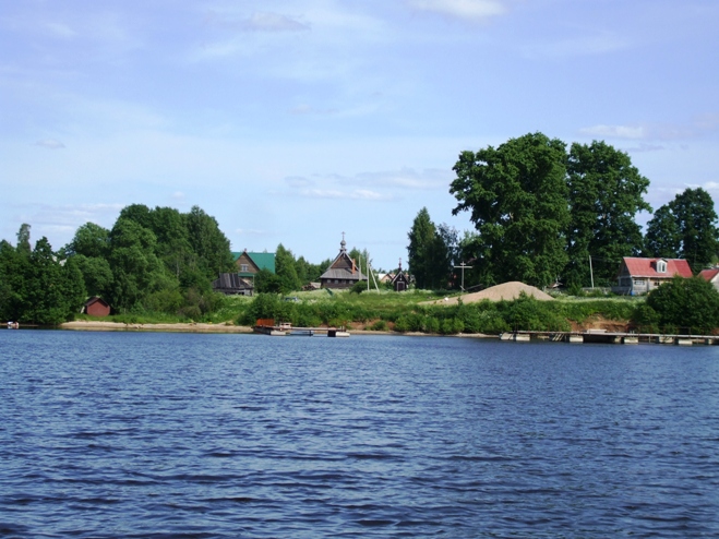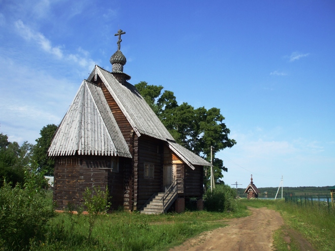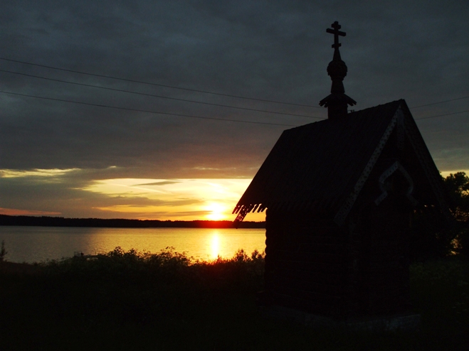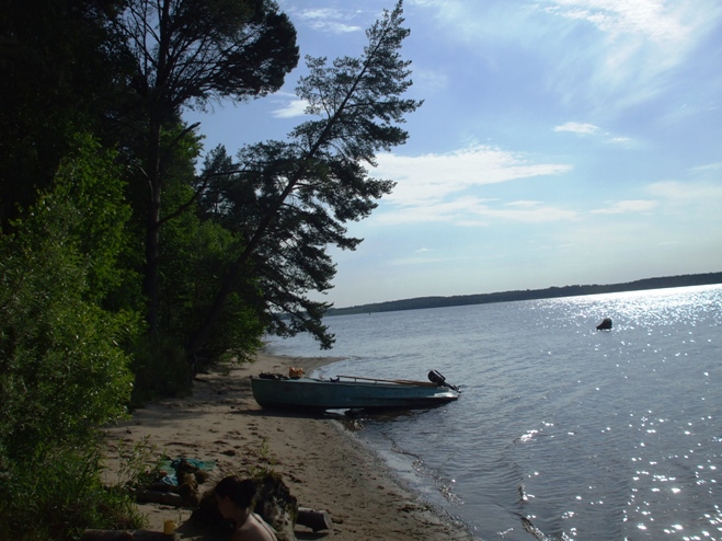So in etwa endete heute unser geplanter Ausflug nach Uglitsch. Wir sind etwas mehr als eine halbe Stunde zur kleinen Bahnstation gelaufen und haben dort dann knapp über eine Stunde auf den einzigen Zug des Tages gewartet, der dann nicht gekommen ist. So ist unser Ausflug nach Uglitsch ausgefallen und wir sind resigniert wieder zurück ins Dorf gelaufen. Dort haben wir erfahren, dass der Zug am Dienstag und Donnerstag nicht fährt. Und auch sonst soll es häufiger Unregelmäßigkeiten geben. Wir haben mit einer Bekannten von Masha ausgemacht, dass wir eine kleine Bootstour auf der Wolga mit zwei ihrer Söhne machen. Nachdem wir unsere Sachen gewechselt haben, sind wir zu dem Anleger gegangen und dann ging es nach einigen Paddelschlägen im seichten Wasser auch schon los. Das Ziel war ein kleiner Strand etwas abseits vom Dorf, wo man prima auch mit kleinen Kindern baden gehen kann. Das haben wir dann auch gemacht - das Wasser war recht angenehm warm und doch schön erfrischend. Die Mutter der beiden Jungs hat uns selbstgemachten Saft und ein paar Kekse mitgegeben, so dass wir sogar ein wenig Picknick machen konnten. Wir haben aus dem Wald, der direkt an der Wassergrenze ist, ein paar Baumstämme geholt und konnten da gut drauf sitzen. An der Stelle hat mir die Wolga besonders gut gefallen - der Strand mündete sofort am Waldrand, so dass einige Stellen des Strandes sogar vom Schatten der Kiefern und Buchen bedeckt war. Auf der anderen Uferseite war eine halb renovierte Kirche gut zu sehen - vor allem der Glockenturm ohne die Spitze. Nach einer Zeit sind wir wieder zurückgefahren und ich habe weiter das Gras rund ums Haus gemäht, bin aber nicht so weit gekommen, wie ich wollte. Am Abend nach dem Abendessen sind wir noch einmal an die Wolga gegangen, um den Sonnenuntergang wieder zu beobachten und wieder war er einmalig schön. Mittlerweile hoffe ich sehr, dass wir noch viele schöne Sonnenuntergänge hier beobachten können.